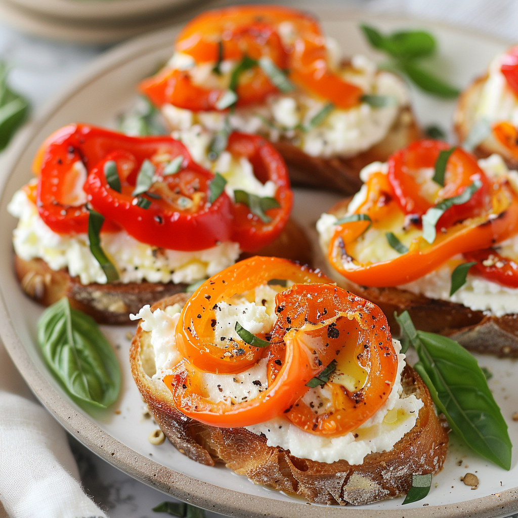 - Top with a few slices of roasted red pepper.