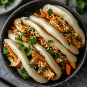 Bao Buns with Chicken A delicious combination of soft bao buns, juicy chicken, and fresh vegetables. Ingredients Pre-made bao buns 400g chicken (thigh or breast) 1 tbsp cornstarch 1 egg 2 cm fresh ginger (grated) 2 garlic cloves (minced)… Lees meer: Bao buns with chicken - Tuna quesedilla
